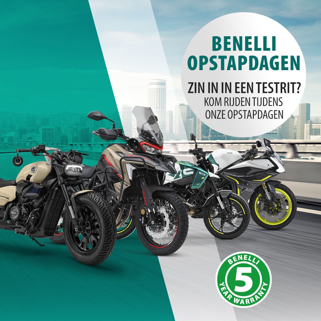 In april en mei trekken Benelli en Morbidelli gezamenlijk door Nederland met een reeks opstapdagen bij aangesloten dealers. Tijdens deze dagen krijgen motorrijders de kans om vrijblijvend en kosteloos proef te rijden op een brede selectie modellen.